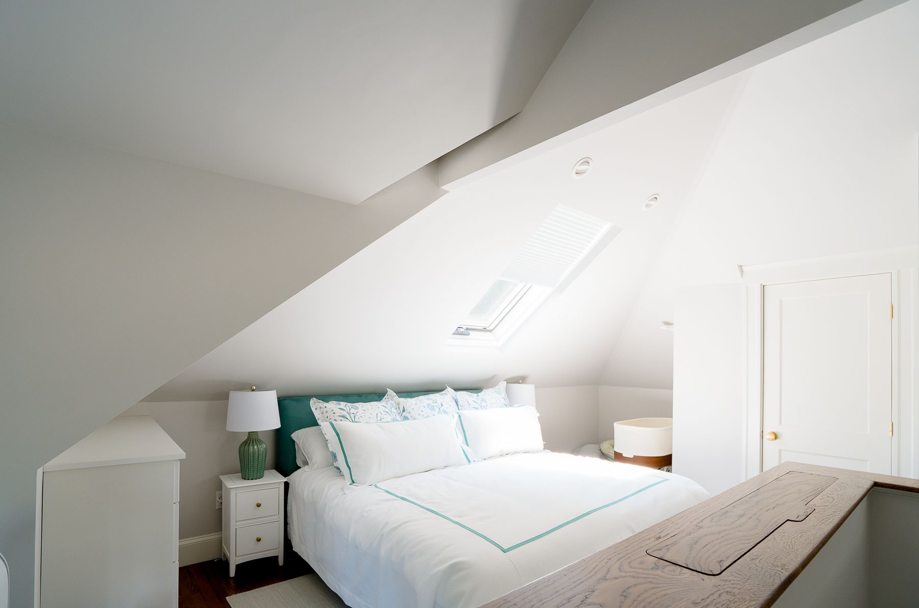 Vaulted ceilings with skylights are a popular design feature in attic conversions. They create an airy and spacious feel, while also allowing for natural light to flood the room.