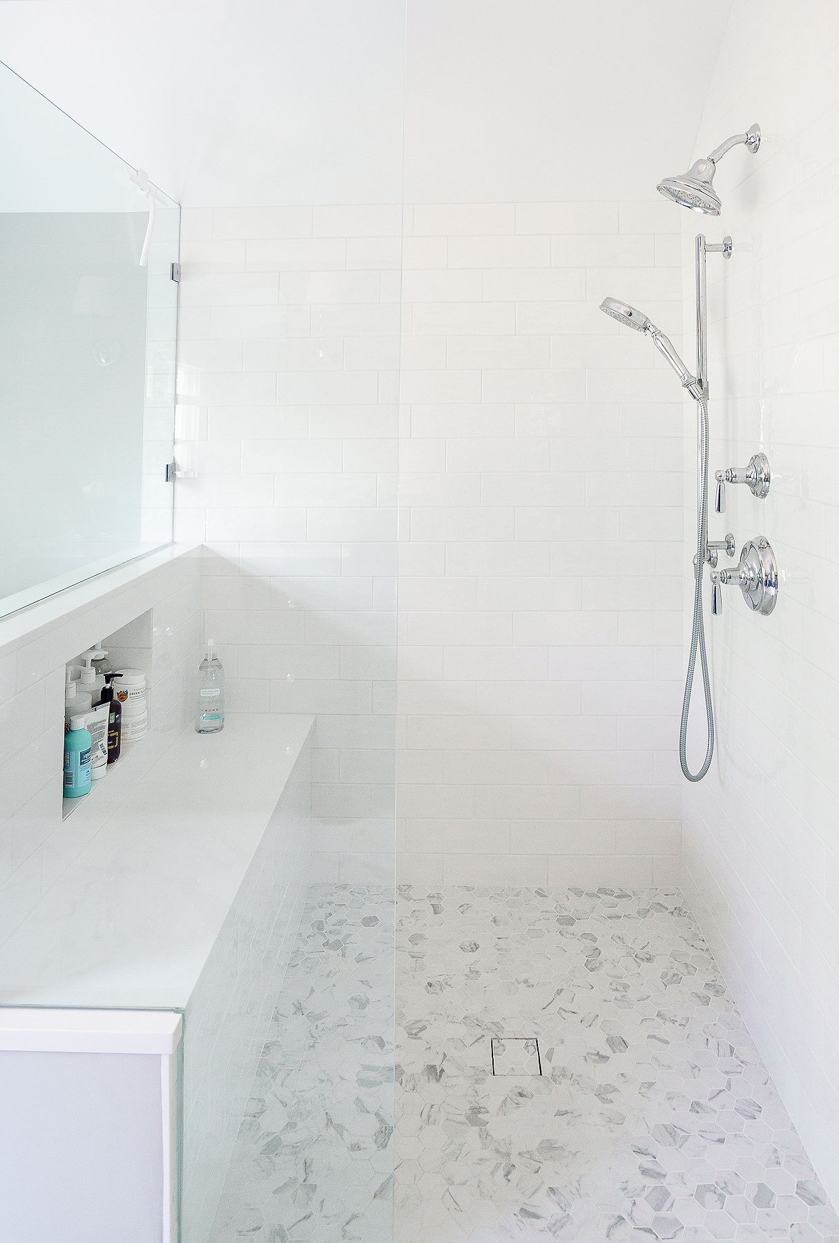 An en suite bathroom is a must-have for a master bedroom, and it's especially important when your bedroom is in the attic. On this project we created a spa-like atmosphere by installing a large shower with subway tile and Carrara white marble hexagon mosaic tile. These materials are both durable and beautiful, and they will add a luxurious touch to any bathroom.