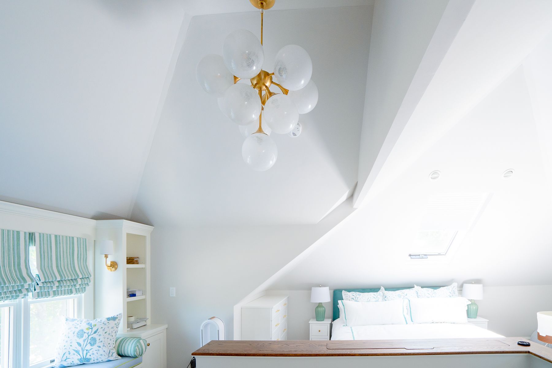 To finish of this project and add a touch of glamour, we installed a contemporary glass designer bubble chandelier. Not only does it illuminate the room beautifully , but it also acts as a stunning focal point.