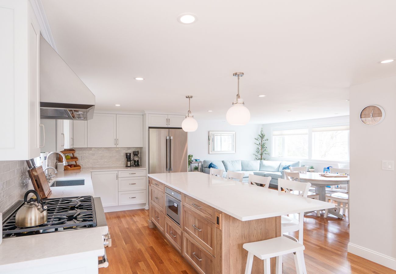 As a custom builder there’s nothing more satisfying than turning a cramped, outdated space into something that feels fresh, functional, and truly livable. One of our recent projects is a perfect example of this kind of transformation, a kitchen redesign where the original layout was cluttered, choppy, and disconnected from the rest of the home. From the start, it was clear the space had potential, but the walls and tight corridors made it feel boxed in and disjointed. So we did what needed to be done: we opened it all up. By removing the interior walls, we created an airy, open-concept floor plan that allowed natural light to flood through and the kitchen to become the true heart of the home. The centerpiece of the new space is a stunning oversized island. Warm wood-toned cabinetry anchoring the room in contrast to the crisp, white cabinets lining the perimeter. It’s not just beautiful; it’s highly functional, offering plenty of workspace and casual seating. Perfect for everything from morning coffee to weekend entertaining. Sleek stainless steel appliances and fixtures throughout, from the refrigerator to the custom range hood, for a polished, modern edge that pairs perfectly with the classic cabinetry palette. The result is a clean, cohesive space that feels open yet grounded, elegant yet welcoming. This project was a reminder that great design isn’t just about aesthetics. It’s about how a space makes you feel. And this one now feels like home. If you would like to find out more about transforming your space click here today for a consultation! We would love to hear from you.